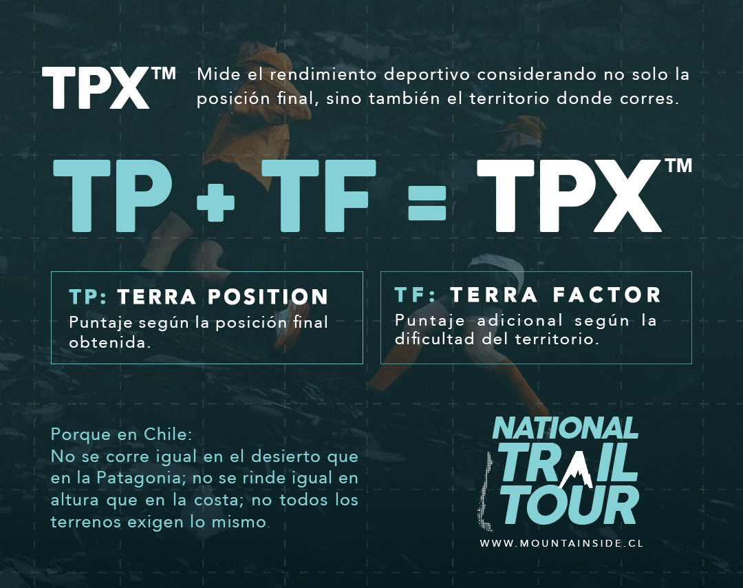 TPX™ (Terrain Performance Experience) es la unidad de medida propia y única en el mundo, creada por Mountain Side Chile para el National Trail Tour.